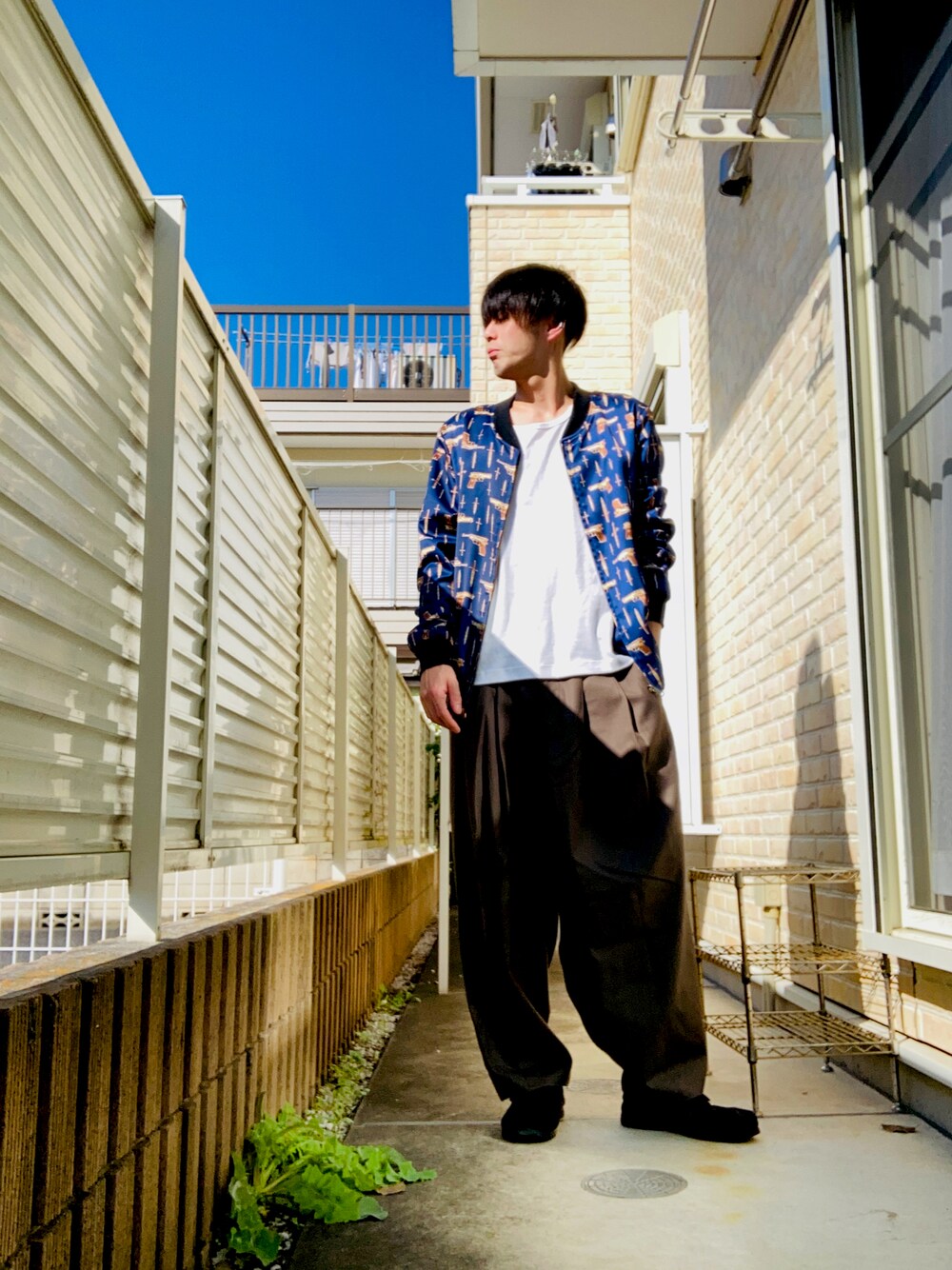こんにちは🌞 暖かいだぬ🌞 今日は、ブルゾン、タンクトップ、バルーンパンツ、スリッポンですねー 今日は、休みだぬ😏 チャリでぷらーぷらー🚲