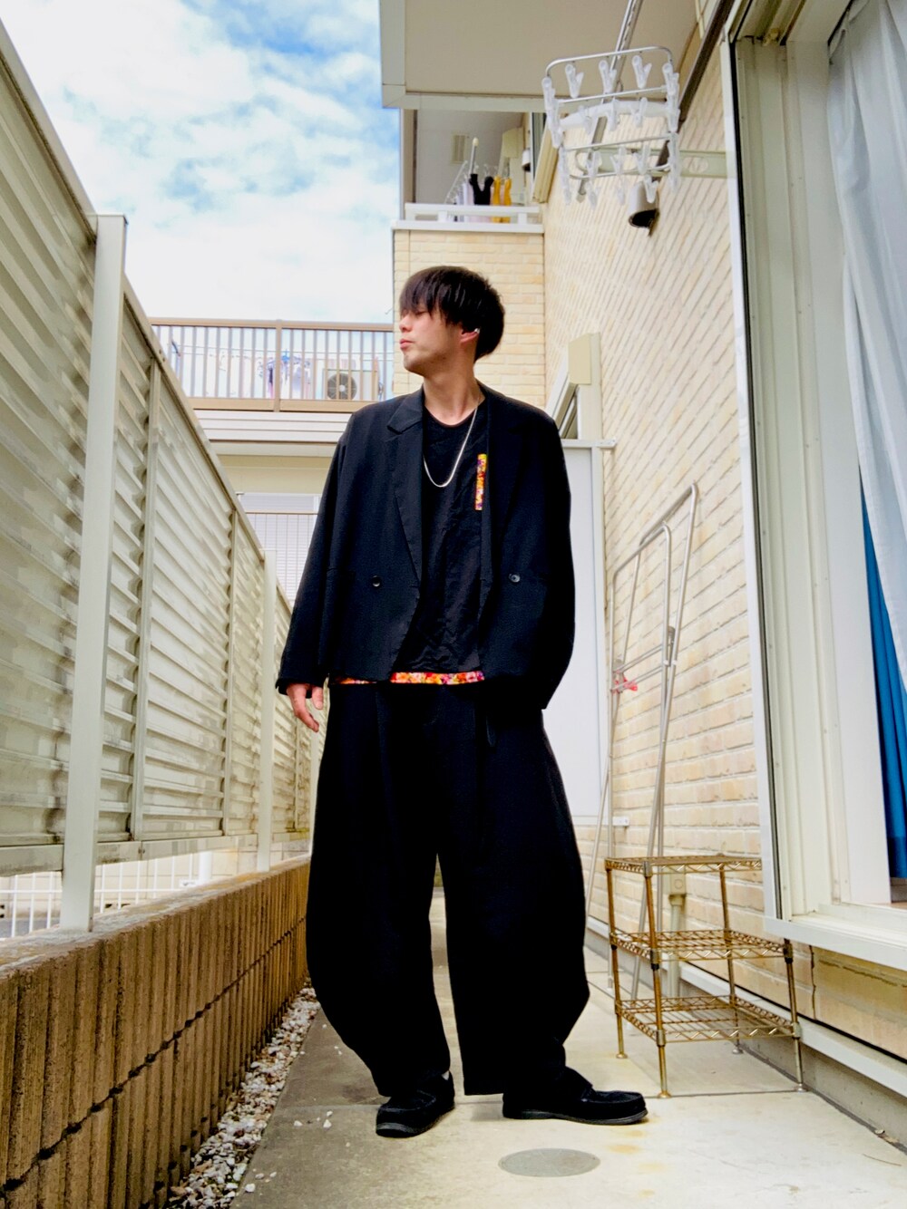こんにちは☁️ 昨日のコーデですねー ジャケゾン、黒Tシャツ、バルーンパンツ、スリッポンですねー 皐月賞、ジオグリフとイクイノックス来たー🐴☺️