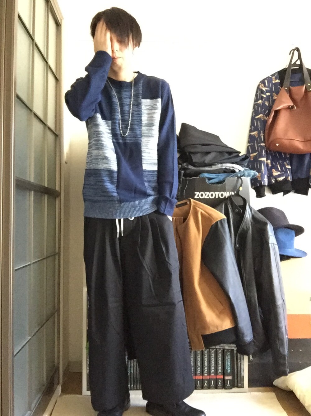 Y-sukeのニット/セーター「Revo. パッチワーク風 クルーネックニット」を使ったコーディネート