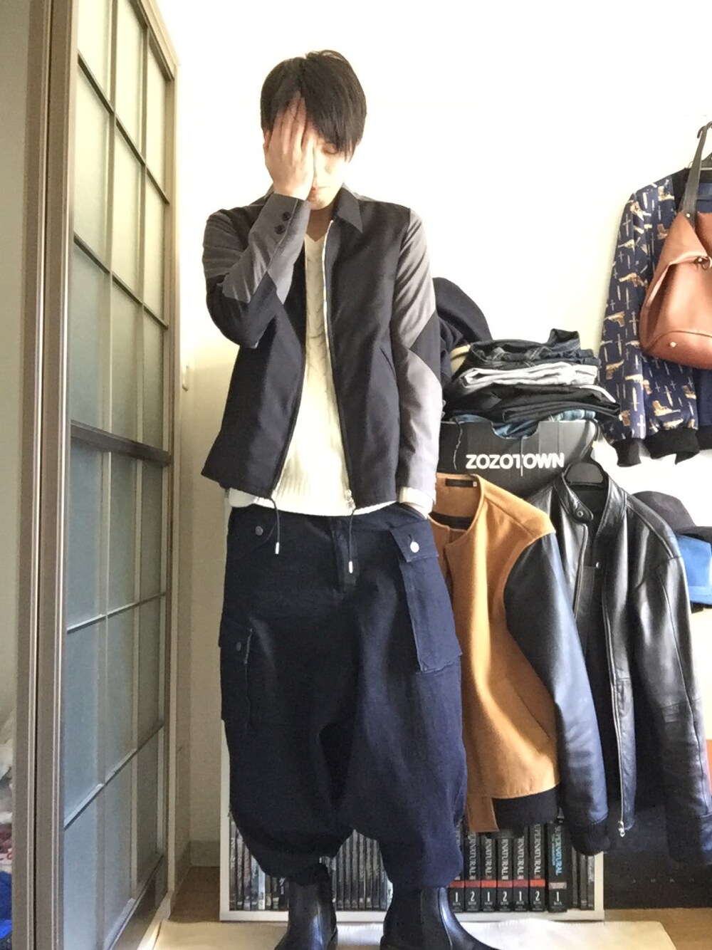 Y-sukeのブルゾン「STUDIOUS T/Rジップアップ切り替えコーチジャケット」を使ったコーディネート