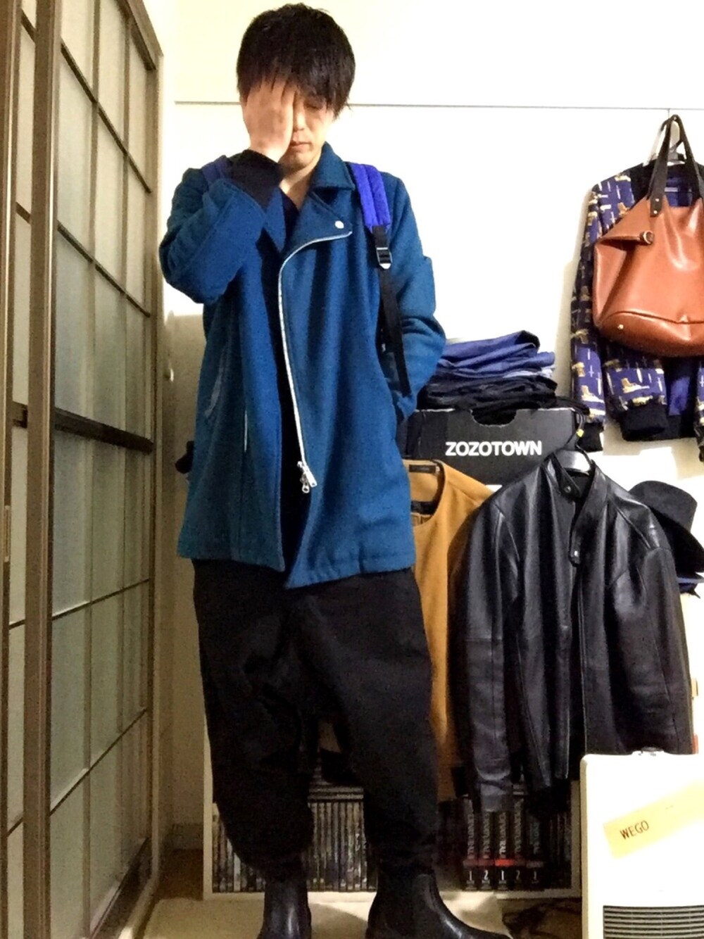 Y-sukeのライダースジャケット「NOT RIGID/ノットリジッド/MELTON RIDERS COAT」を使ったコーディネート