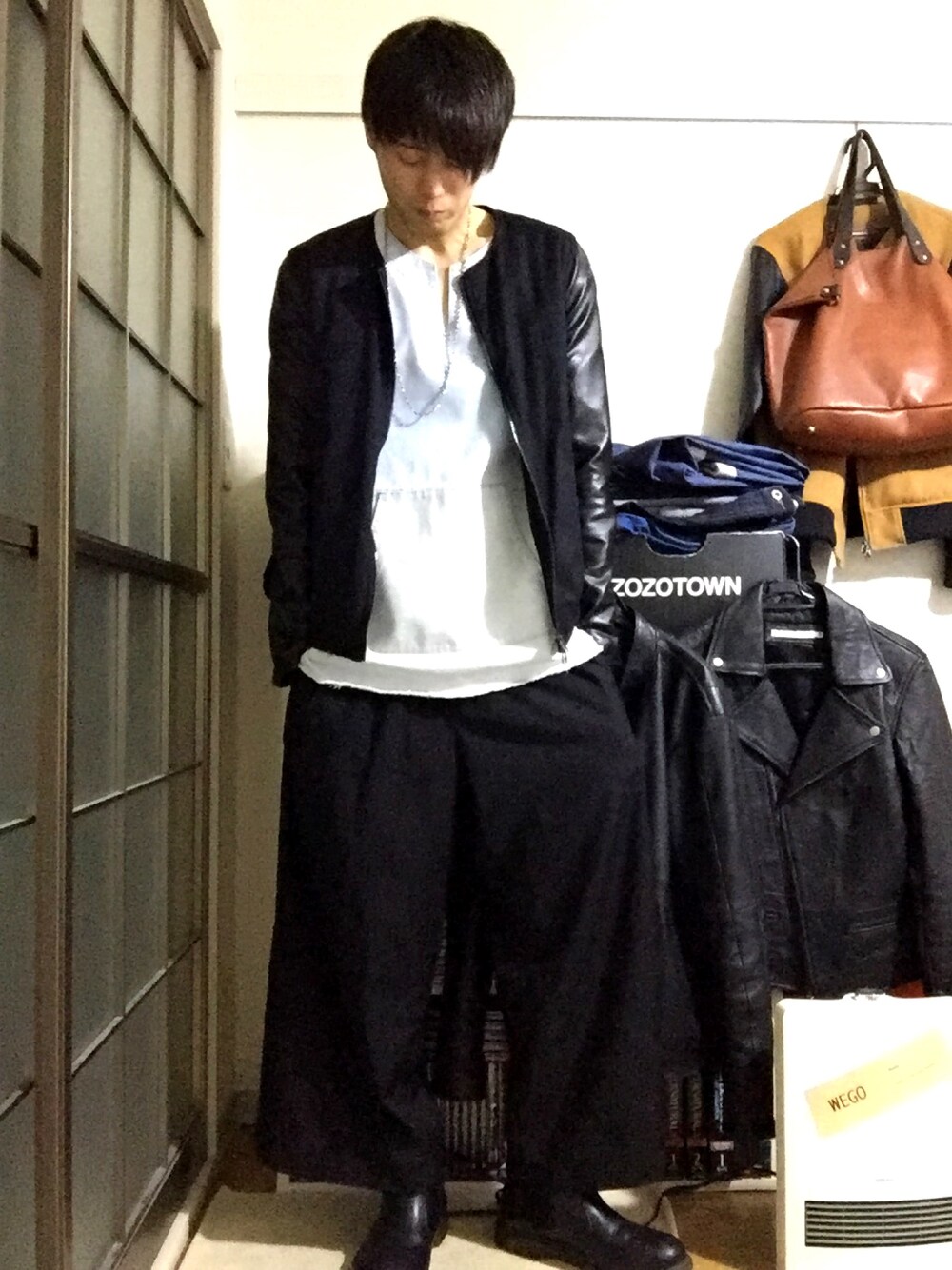 Y-sukeのノーカラージャケット「UR-120 袖切替ノーカラーブルゾン」を使ったコーディネート
