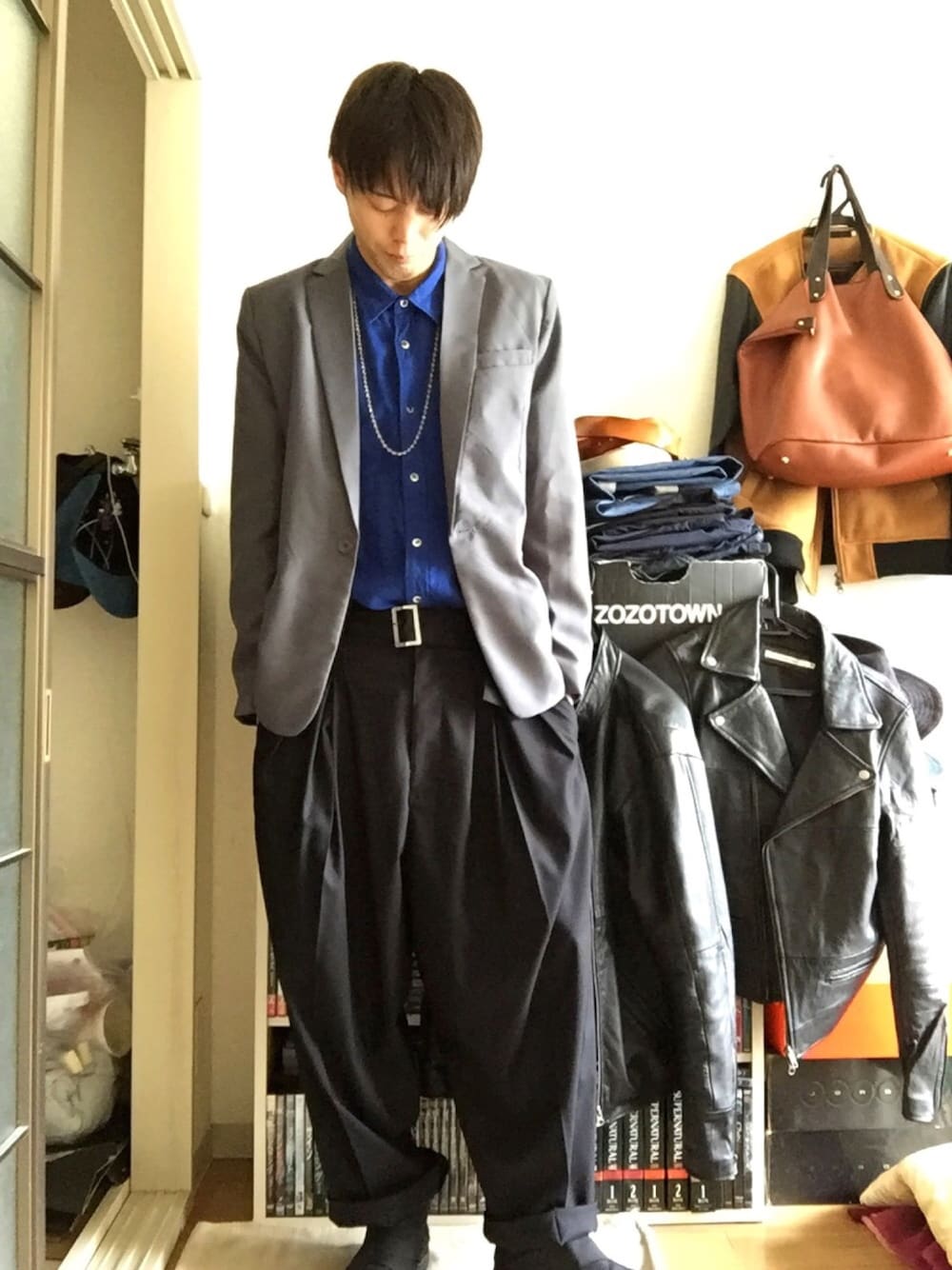 こんばんわー 撮り溜めコーデですねー グレージャケット、ブルーシャツ、プリーツスラックス、スニーカーですねー 何となく、シャツインしてみた(>_<) 少しずつ暖かくなってきたので、ブルーをみたいな感じ( ^ω^ ) めちゃめちゃ眠い… 疲れが抜けん… でわでわ(>_<)