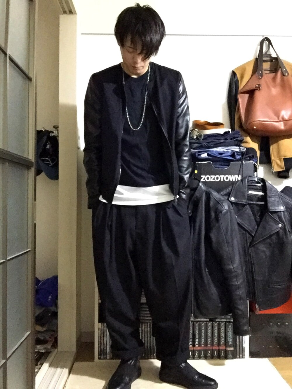 Y-sukeのノーカラージャケット「UR-120 袖切替ノーカラーブルゾン」を使ったコーディネート