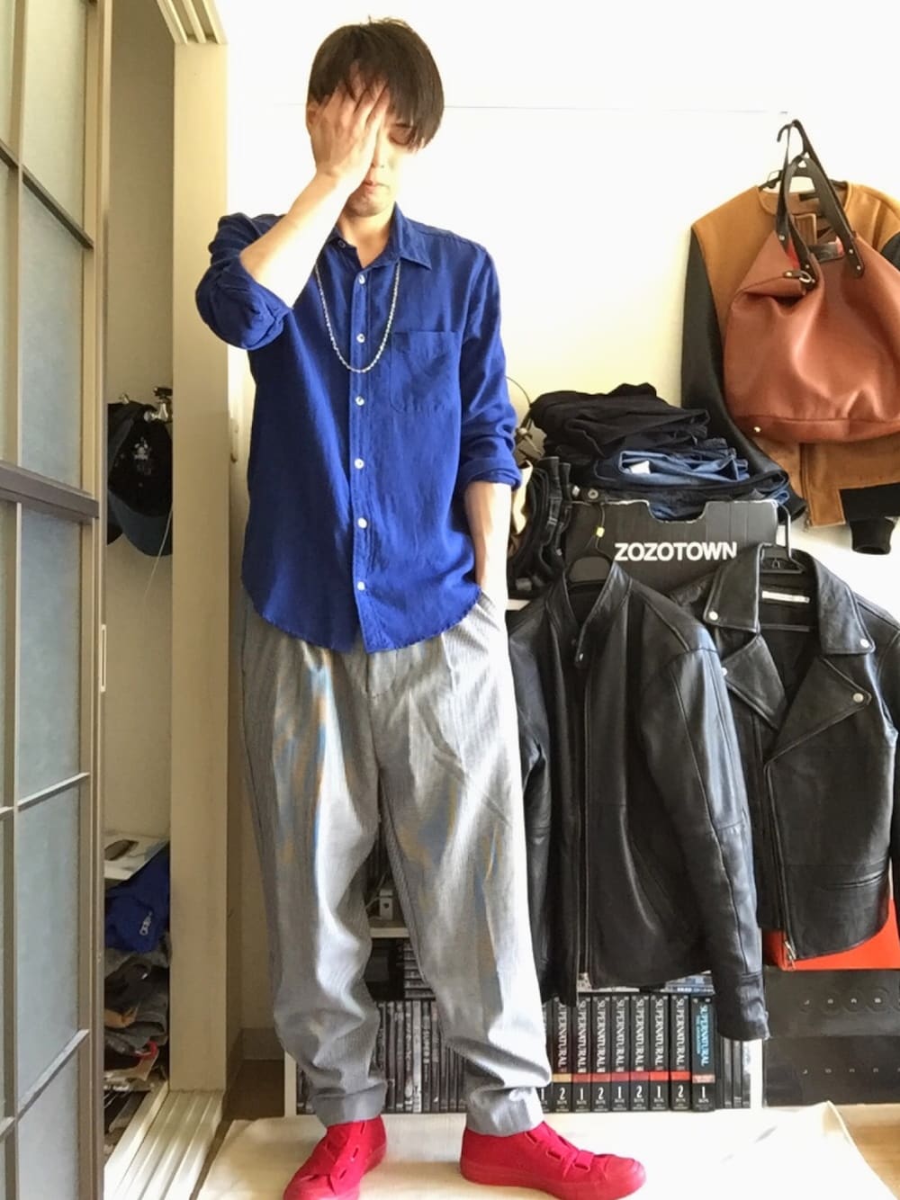 おはようございます🌧 撮り溜めコーデですねー 青シャツ、千鳥柄ワイパン、スニーカーですねー まだ、寒暖差が続きますので体調に気をつけて過ごしましょう(^-^) でわでわ また(^-^)