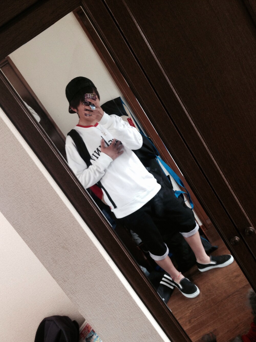 ブラック系のその他パンツを着用したメンズの春コーディネートの1枚目の写真