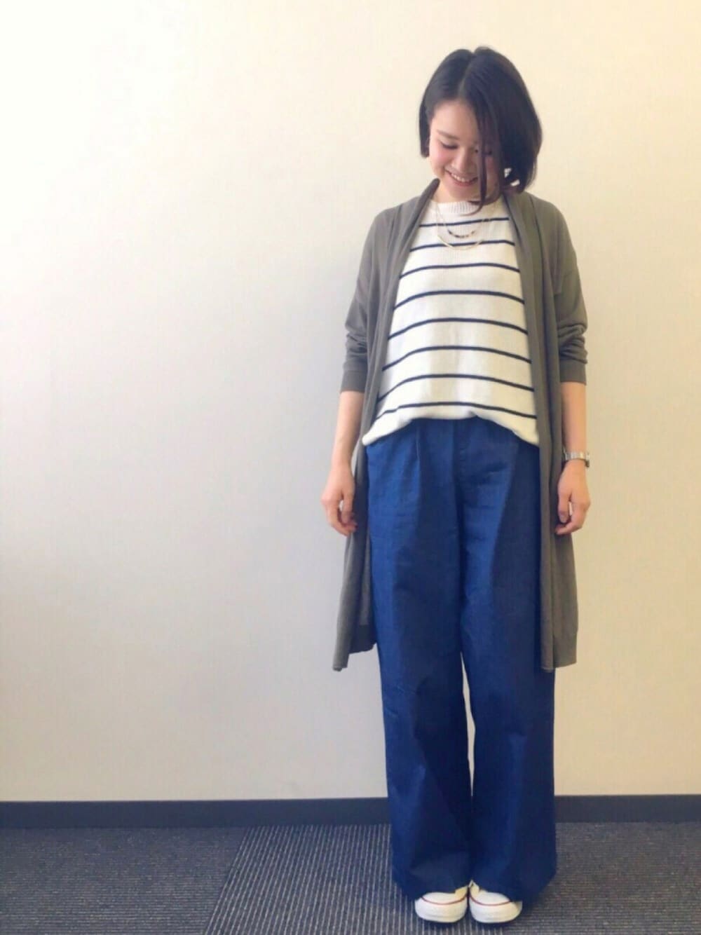ちょっと前のだけど...🙃 カーディガンは長袖だけどさらっとした着心地だから日焼け対策とか雨の日にも大活躍🎵 パンツはウエストが紐で調整できるから私でもシルエット崩さずにきれます☺️