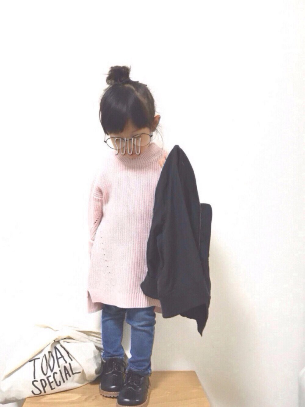 suuu☺︎のニット/セーター「【キッズ】7ゲージボトルネックニット長袖/727301 」を使ったコーディネート