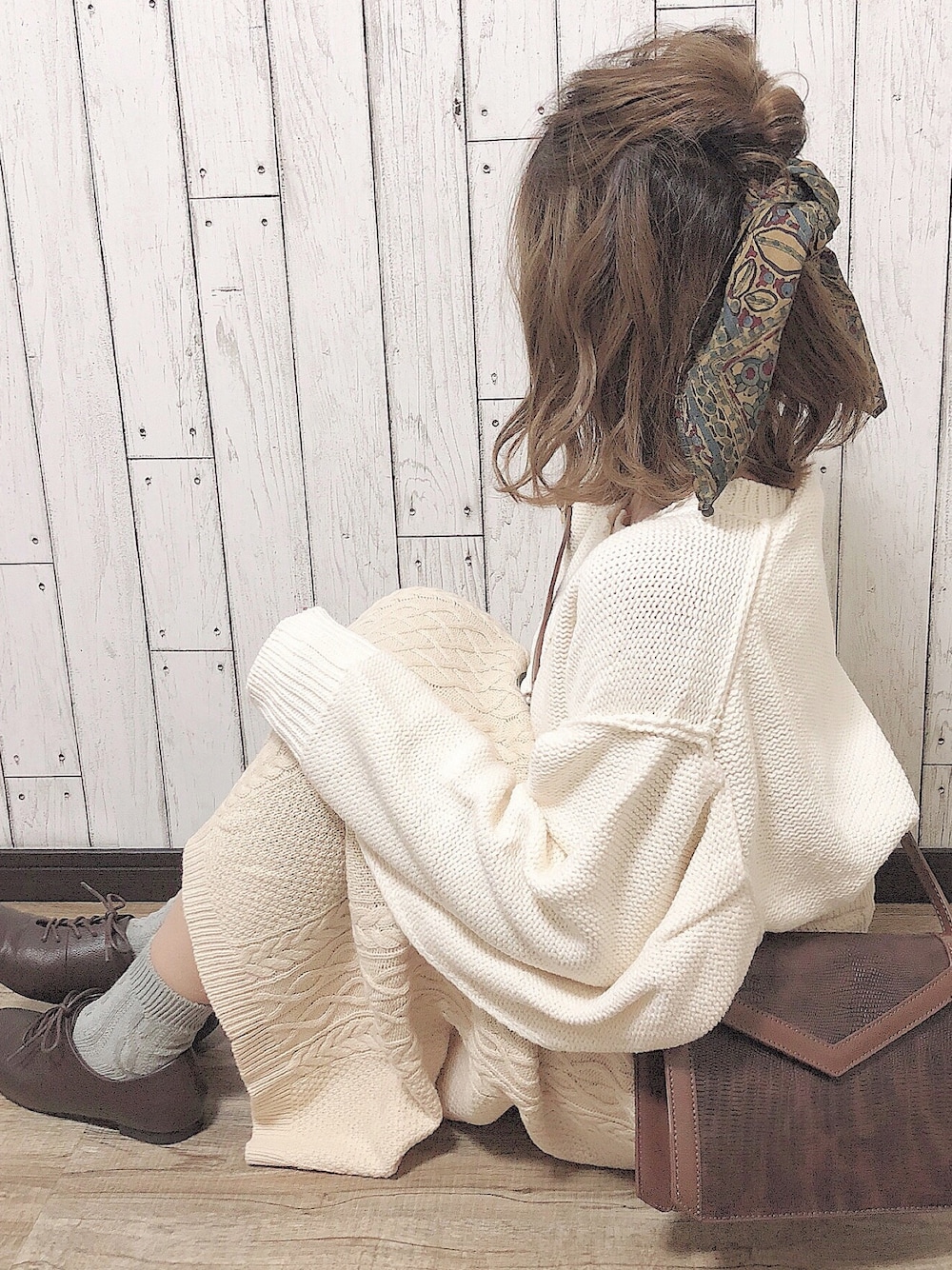 ホワイトコーデで 小物はブラウン系に! 森ガール的 ♡ 古いですかね?🤣 ホワイトとブラウンの組み合わせ最高です (⁎˃ᴗ˂⁎)
