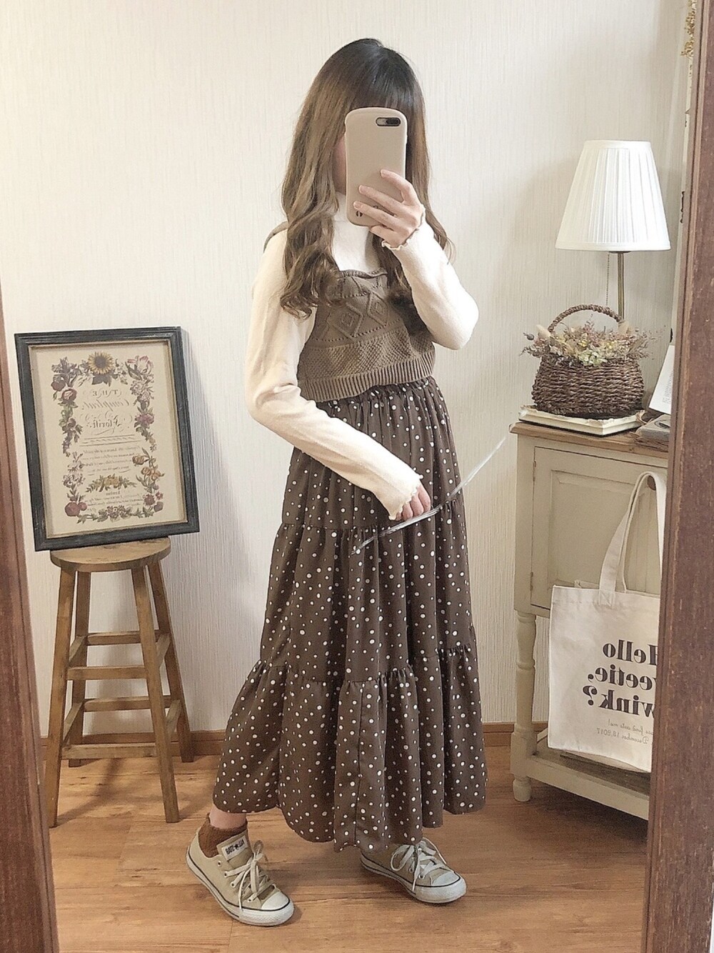 ブラウンコーデです ☺️♡ スカートのシルエットが好きでお気に入り (*ˊᵕˋ*) Instagram→@m.fu__u ブランド経営してます!→@wink_miu / @winkmiu_select