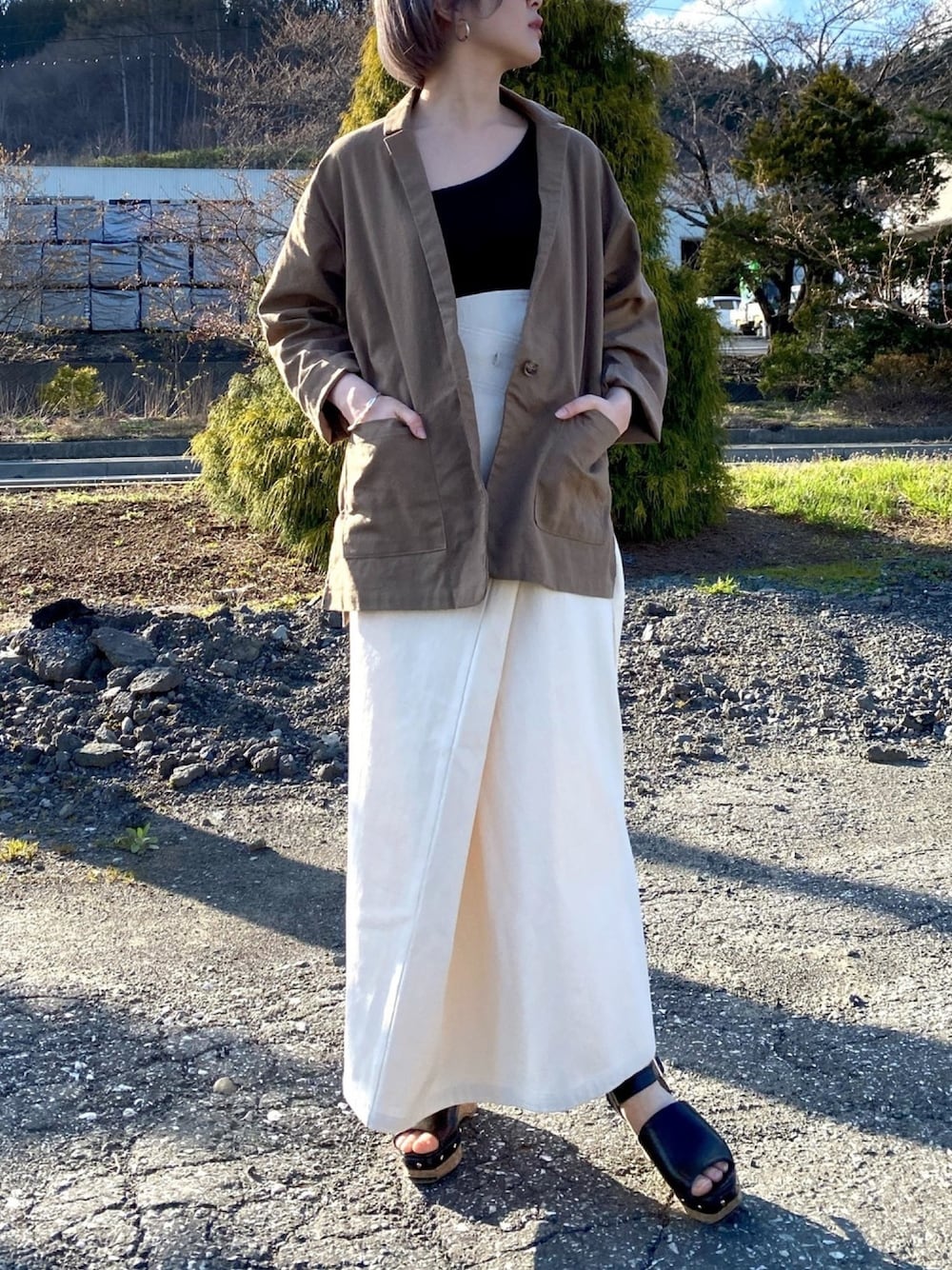 とよのスカート「AUNT MARIE'S コットンツイルラップロングスカート」を使ったコーディネート