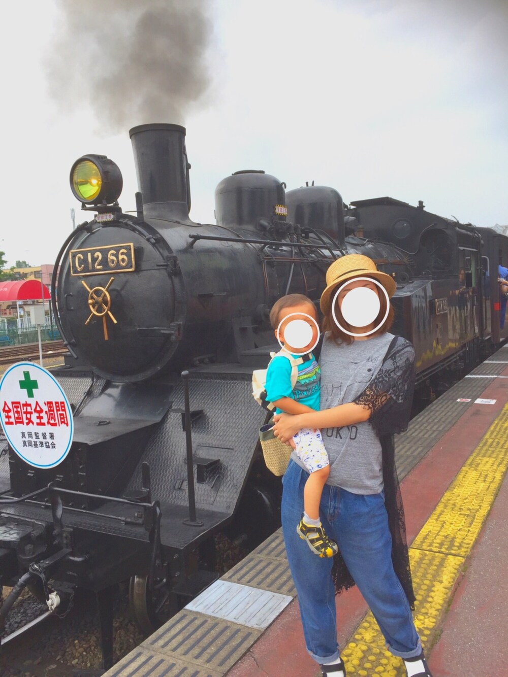 息子とSLを見に行きました! この日は暑かった‼️ GUのパンツはきやすくて大好き♡