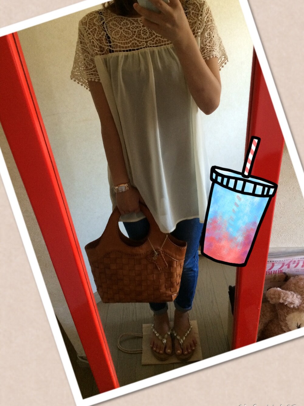 ワンピース cynthia パンツ UNIQLO サンダル JELLY BEANS 時計 DIESEL バッグ robita 今日も暑いですね〜(´・_・`) なので見た目も涼しそうなコーデにしました! さぁ今日も仕事頑張るぞ!