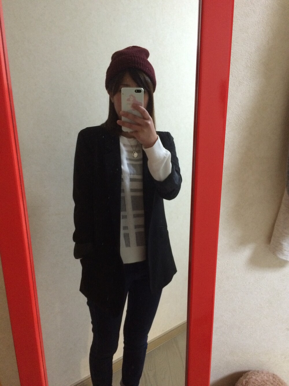 ジャケット GU インナー GU パンツ UNIQLO ニット帽 ehyphen