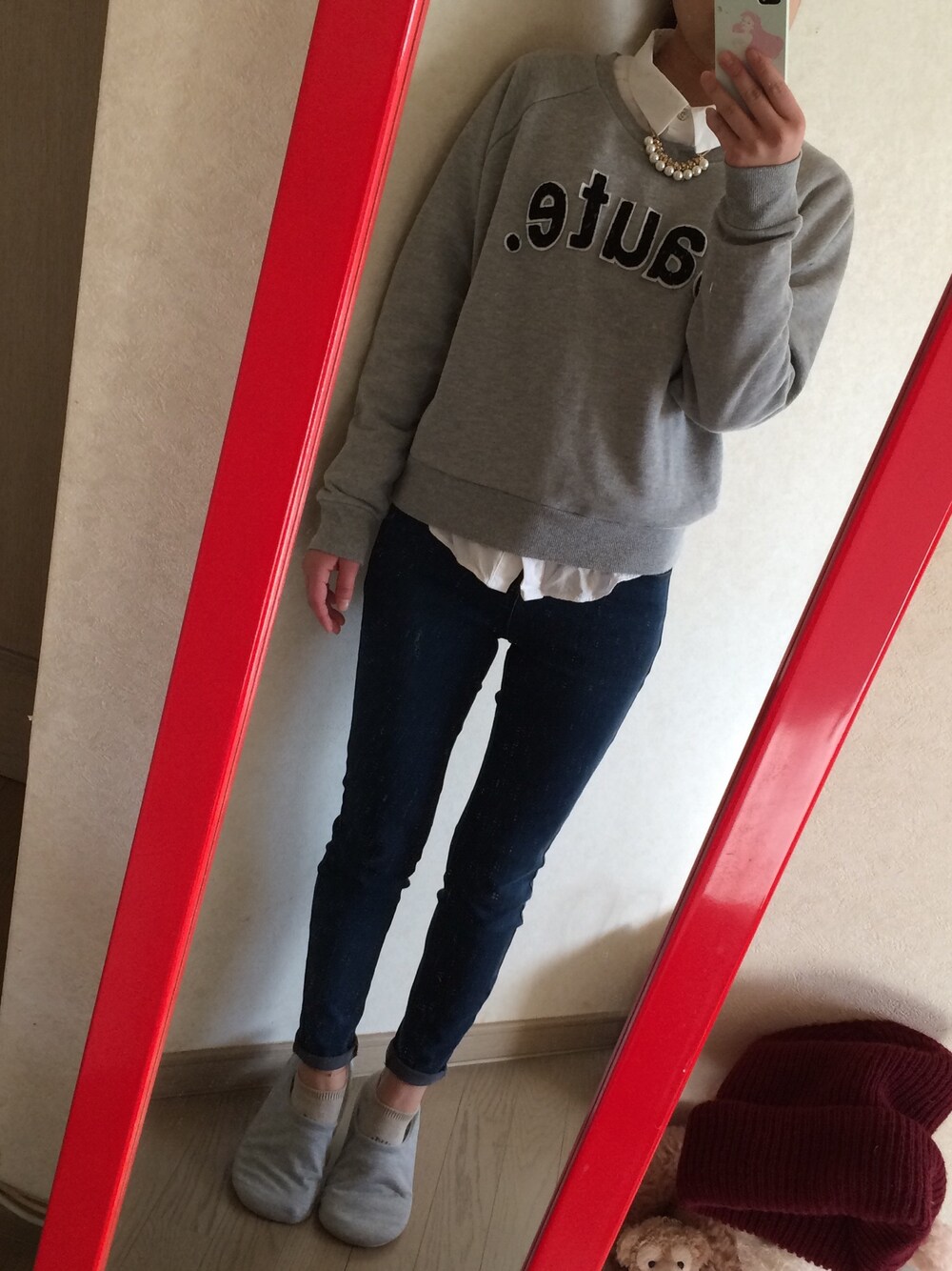 トレーナー JEANASiS シャツ JEANASiS パンツ UNIQLO ネックレス ブランド不明