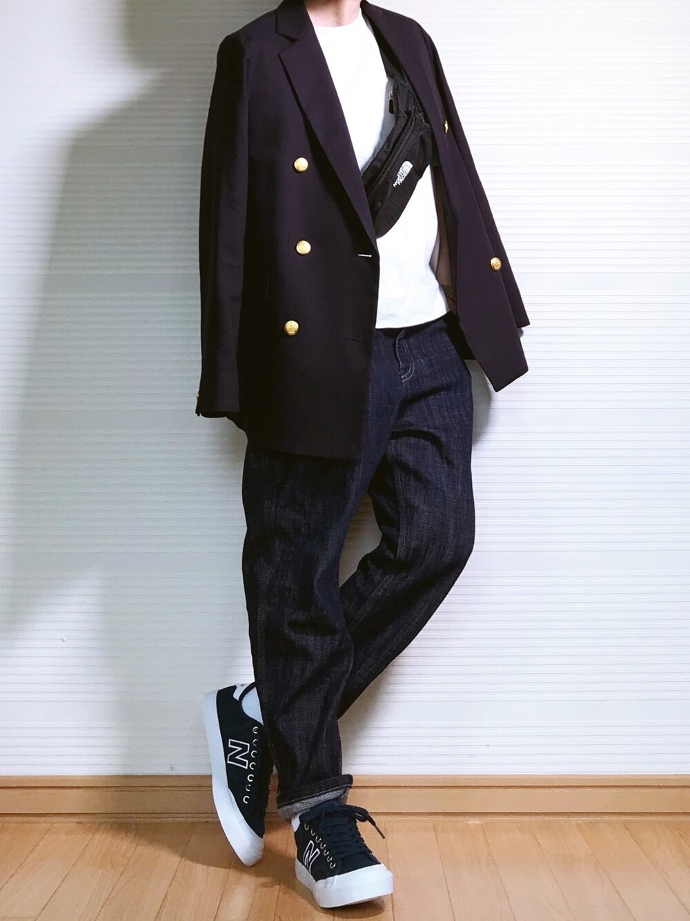 ネイビーとホワイトのカジュアルコーデに キレイめジャケット😊 🔶コーデ詳細🔶 *outer.…コットンリネン ダブルテーラージャケット。 *tops.…ヘビーウェイトコットンクロップドTシャツ(パターンオーダー)/オフホワイト[WOMEN]。 *bottoms.…johnbull private labo スリークォーターワークパンツ。 *shoes.…NEW BALANCE×URBAN RESEARCH 別注PROCT。 *bag.…the north face ザ・ノース・フェイス ウエストバッグ / グラニュール。 *accessory….。 *wristwatch….。
