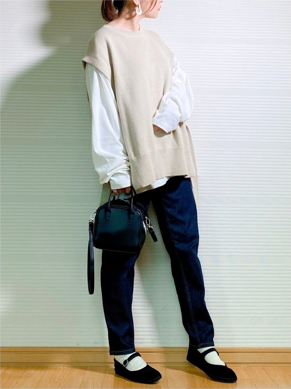🔶コーデ詳細🔶 *tops.…❶ archives レースアップビスチェSET カットソーのみ。 ❷LOWRYS FARM サイドスリットベスト 869121。 *bottoms.…URBAN RESEARCH sonny label マムデニム。 *shoes.…<DROGHERIA CRIVELLINI>MARYJANE フラットシューズ。 *bag.…GU スクエアミニバッグ 。 *accessory….GOLDY ニュアンス シェイプ ダブル リング イヤリング。