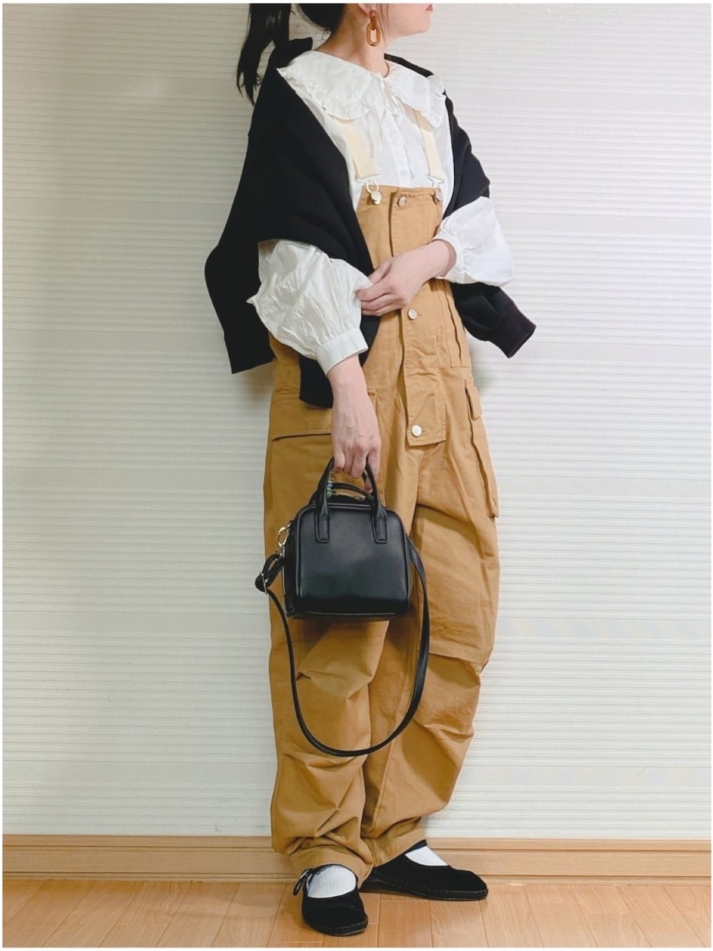 🔶コーデ詳細🔶 *outer.…LAKOLE ダンボールボリューミーカーディガン。 *tops.…LOWRYS FARM BIGカラーフリルブラウスLS 935189。 *bottoms.…キャメルカラー オーバーオール メンズ S。 *shoes.…<DROGHERIA CRIVELLINI>MARYJANE フラットシューズ。 *bag.…GU スクエアミニバッグ。 *accessory….GOLDY ビッグ アクリルチェーン ピアス。