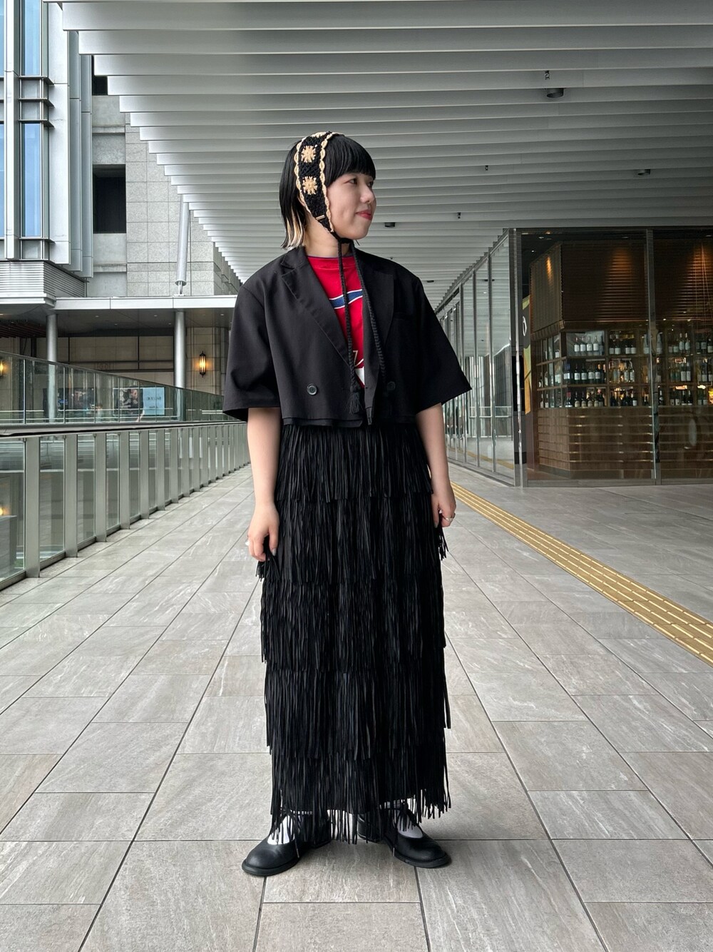 夏のブラックコーデは重くなりすぎないように気をつけてます! ヘアバンドは甘くなりやすいのでジャケットやTシャツでバランスをとって合わせてます。