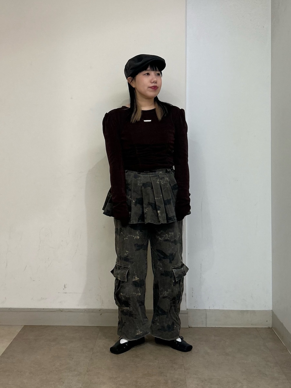 おおもと(OVERRIDE/カオリノモリ アミュプラザ博多)のハンチング/ベレー帽「arth Cashmere Combi Hunting / アース」を使ったコーディネート
