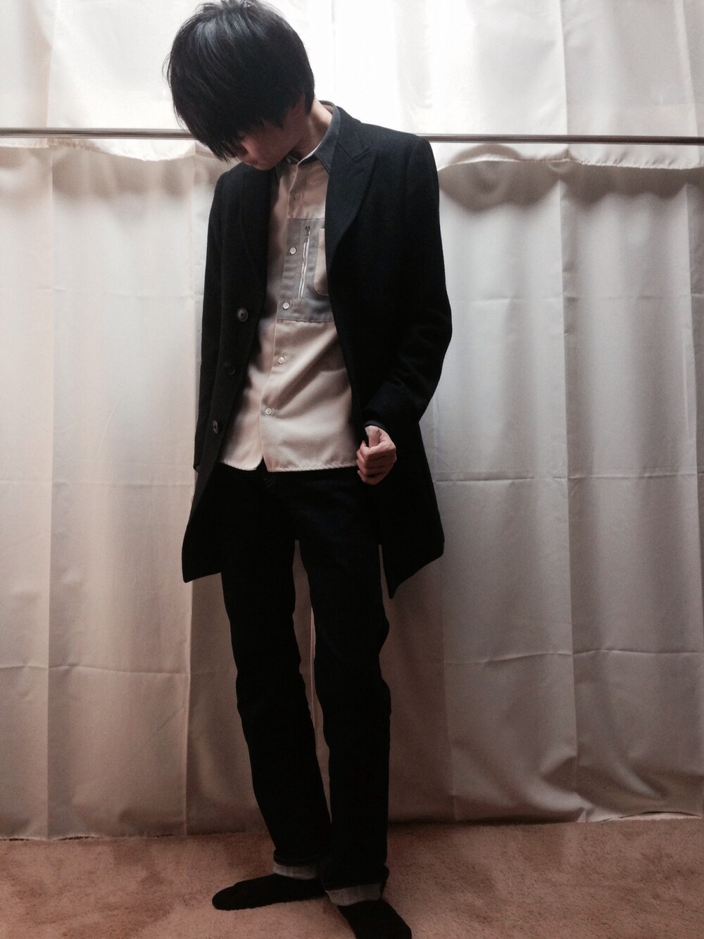 こんにちはー! ライブ後、ずっとお腹が筋肉痛で辛いです。 今日はblack&blueとlui's,New Eraのコラボのジッパーシャツに、チェスターコートと、インディゴのスリムフィットデニムを履いていますー! 靴はナイキエアマックスでも履こうかなと思ってます! black&blueのジッパーシャツは、ジャケットやコートのインナーとしてもカラーの色の違いや、ジッパーなどがちらりと見えるし、一枚で着たらストリートミックスとしてもいけるので、とても気に入ってます!\(^o^)/ 何より生地があったかいのがこの季節にはとてもありがたいです!
