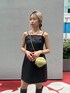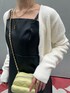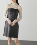 レザーのミニワンピとロングブーツでちょっぴり強めな秋コーデに♡ ニットカーデをゆるっと羽織り、ハートのキルティングバッグで可愛らしさをプラス♪