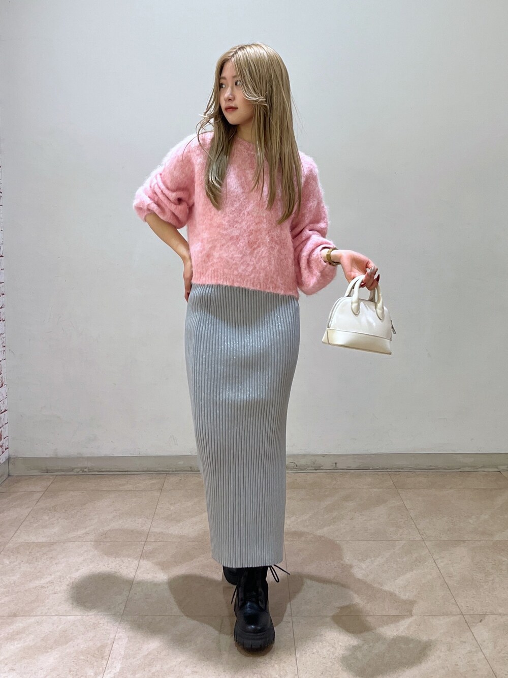 shioのニット/セーター「◇ウール混リサイクルエコシャギーショート丈ニット」を使ったコーディネート