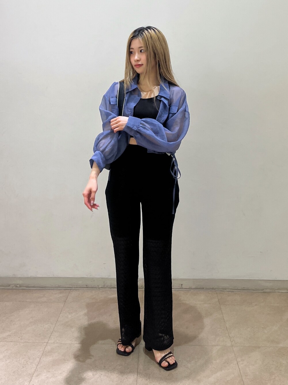 shioのシャツ/ブラウス「◆裾ドロストショート丈シアーシャツ」を使ったコーディネート