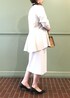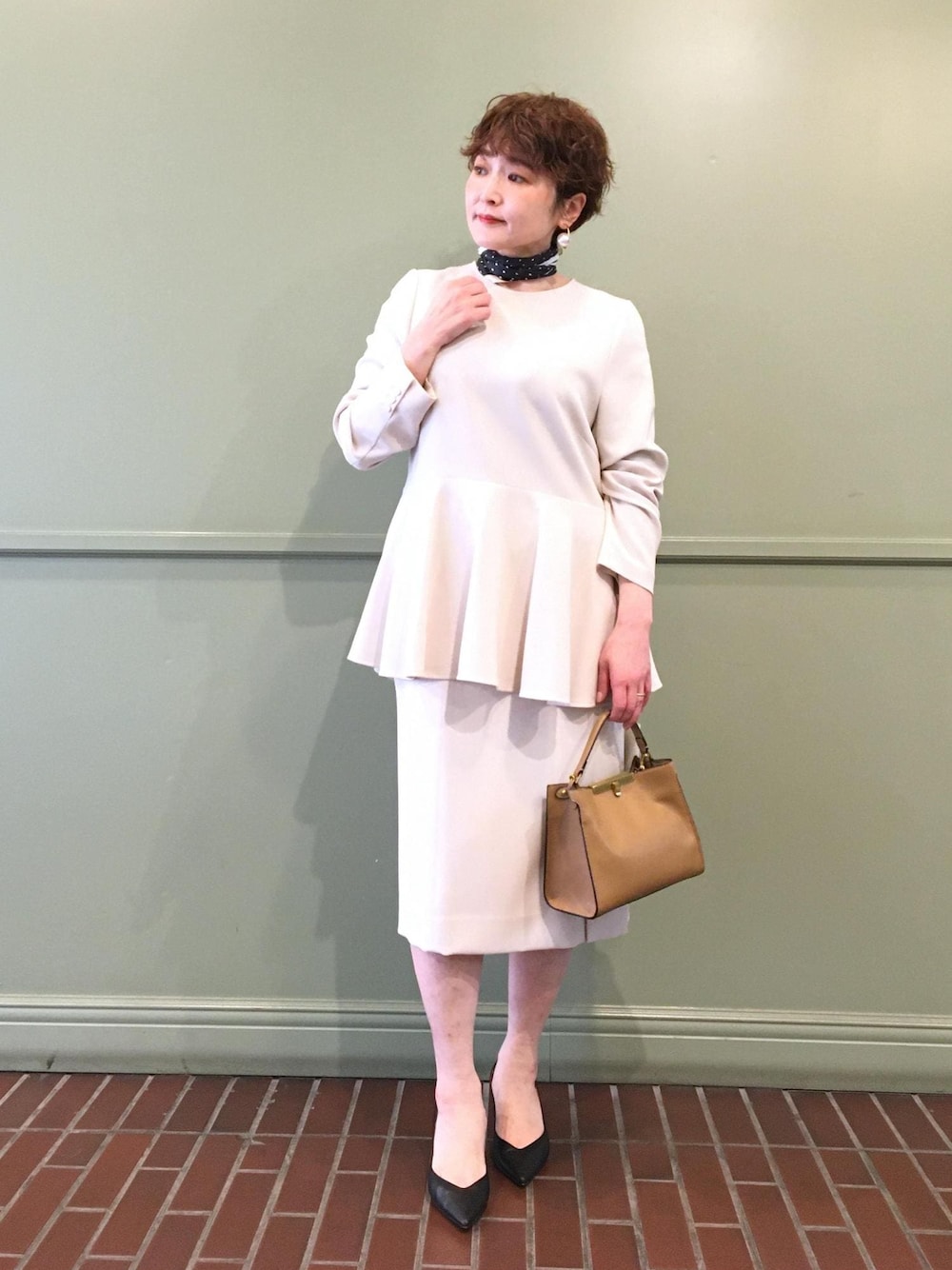 入卒や、お仕事で着用しやすいセットアップです。 ブラウスはボトムをネイビーにしたり、ジャケットのインナーとしても活躍しますので お勧めの一枚です。 一枚で着映えするブラウスは、着るだけできまるのが嬉しいですよね♡ アクセサリーをあまり着けたくない方にも喜ばれるブラウスだと思います。 同素材のシリーズGGS24000もございますので、パンツスタイルがお好きな方はそちらでも 合わせてみてください。