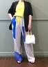 画像で見ると派手に見えるかもしれませんが、着てしまうとリラックスして着用出来るパンツでした。 トップスは今回イエローを合わせましたが、ブルーやホワイト、ピンク等々 思い思いの色合わせで着て頂きたいです。 今回は、パンツのボリュームもあったので、足元はヒールのあるサンダルを選びました。 骨格によって、ボリュームのあるサンダルを合わせたりフラットなサンダルを選んだりと楽しめます。 クローゼットに一枚柄のパンツがあれば、夏のコーデが楽しくなりますね♪