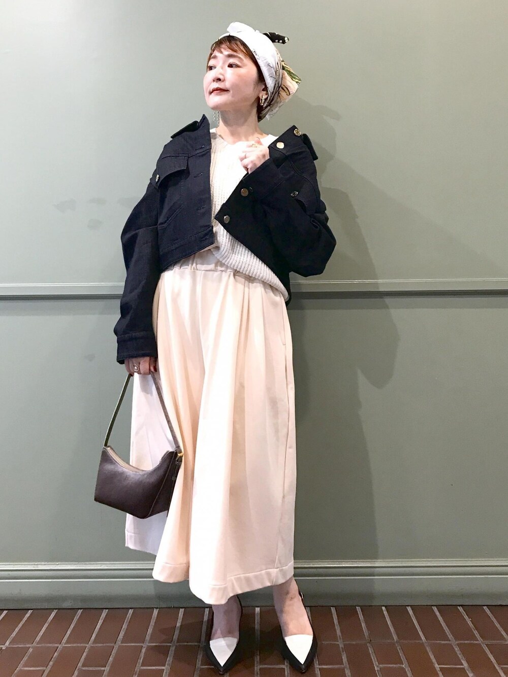 金子さん監修のキャロットパンツを秋らしく着回しました。 同系色のニットベストで縦に繋ぐ事で、すっきりと見えるようにしました。 デニムがゆったりしてるため、厚手のものを着込めます。 丈が短いので、ボリュームのあるボトムでもスッキリです♡