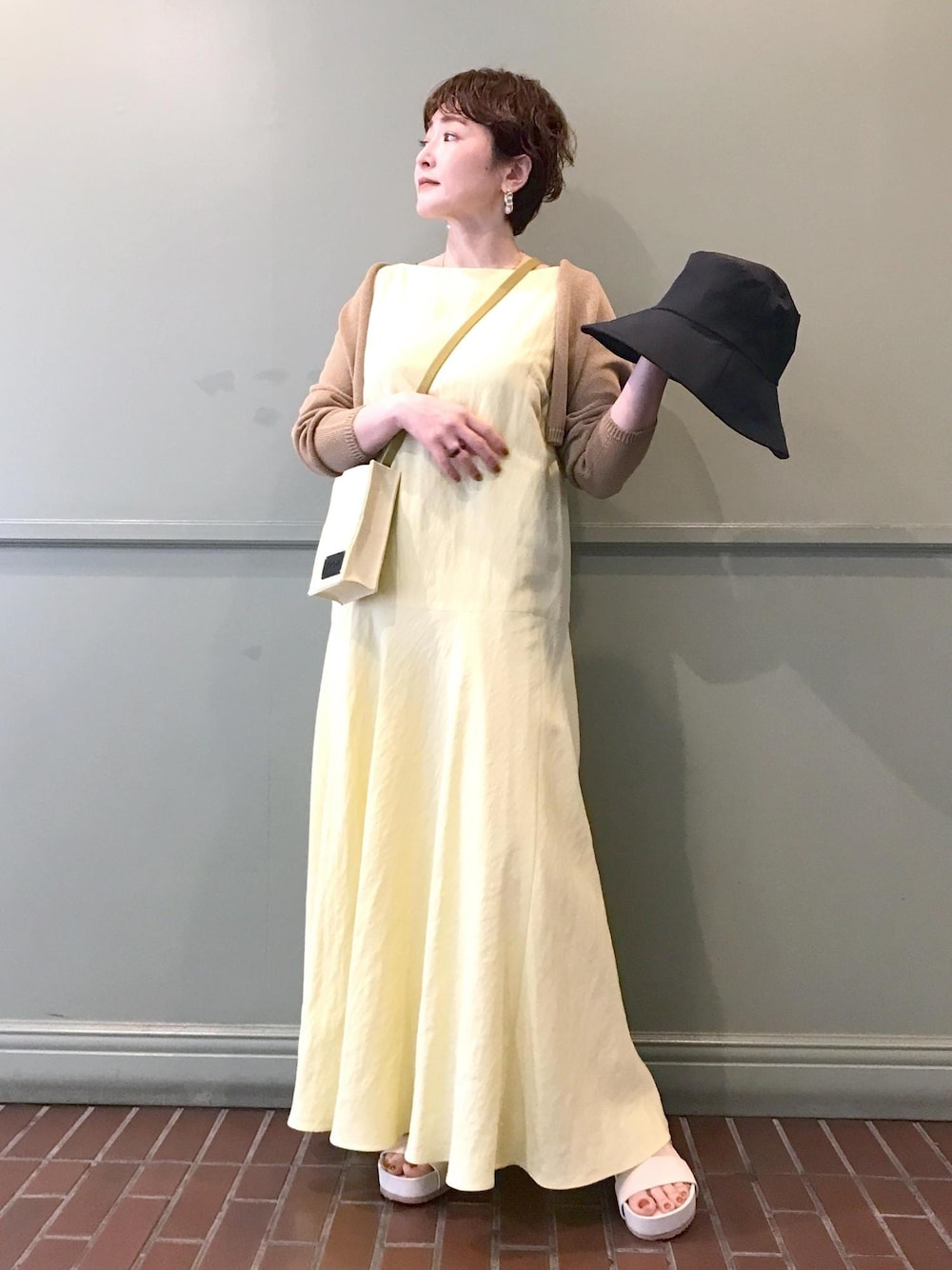 夏の旅行をイメージしてイエローのワンピースで明るくまとめました。 ボレロですっきりと♪ 荷物は少なめで街を散策。 強い日差しにも負けないスタイリングです。