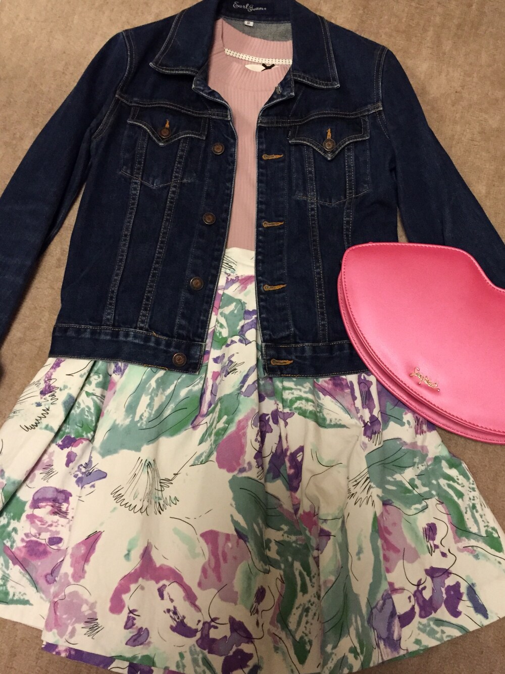 ピンクをメインにした春らしいコーデです。