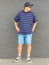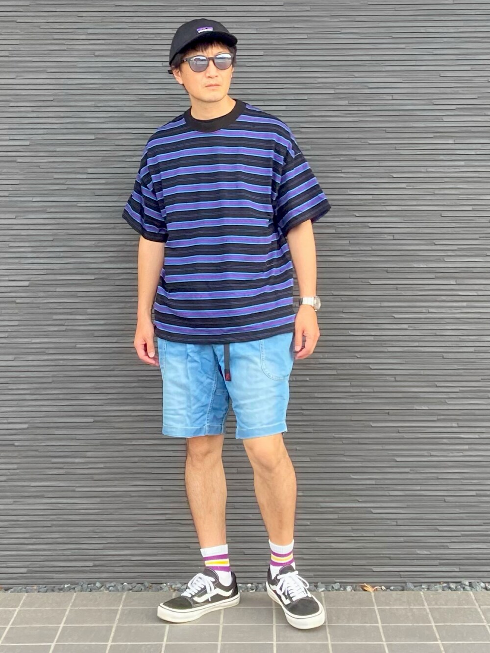 ブルーとパープルを使って夏コーデ🌀 ビッグTシャツに良く合うGRAMICCIデニムハーフパンツ😎 今日も動きやすさ重視✨✨ THE MATCH 2022が楽しみすぎて眠れなかった〜🥊武尊と天心のこれまでのいろんな思いを思いっきりぶつけて最高の試合になる事に期待✨✨熱い対戦カードあり過ぎる🔥