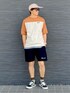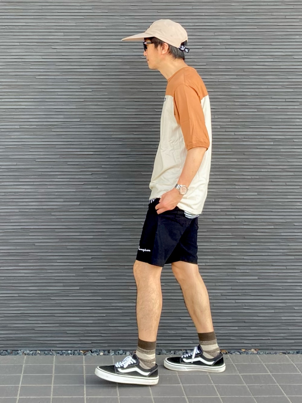 キャップにサングラス😎 Tシャツにハーフパンツ😎 夏定番コーデ✨✨ 今日も暑くなりそう☀️