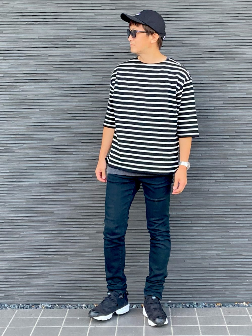 ブラック強めのモノトーンコーデ⚫️⚪️ やっぱりボーダー好き💕 良い週末を😎
