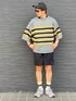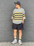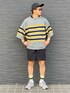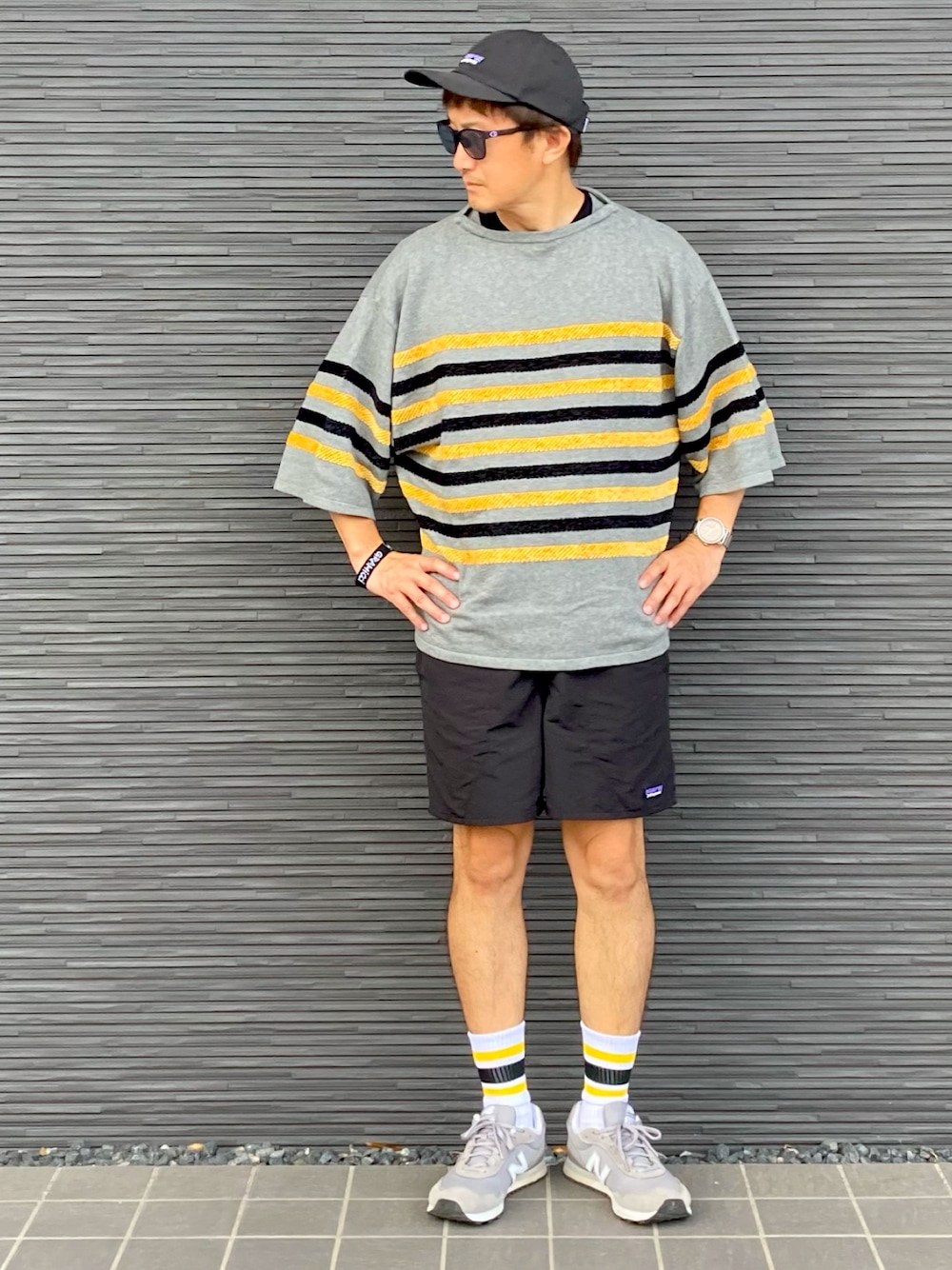 ニットとソックスのラインカラーを合わせて⚫️🟡 ニットとスニーカーのカラーを合わせて🩶 キャップとハーフパンツのカラーを合わせて⚫️