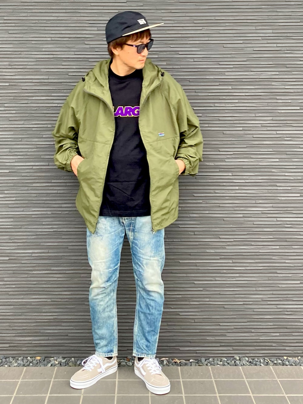 FREAKS'STOREのナイロンジャケットにデニムを合わせてストリートスタイル😎 ビッグシルエットだからインナーも何着ても合う感じ✨✨寒暖差の激しい日々に活躍中👍