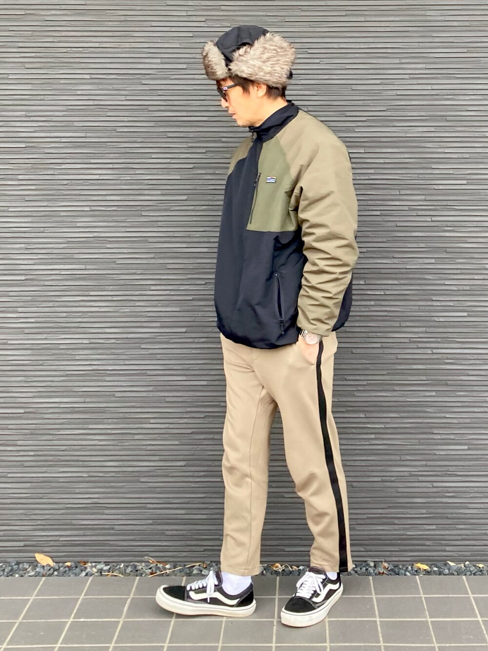 ブラック×ベージュ⚫️🟡を中心として、 ナイロンジャケットにラインパンツを合わせて😎