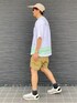 お気に入りのchampionバックプリントポケTシャツにハーフパンツでいつもの夏スタイル😎😎