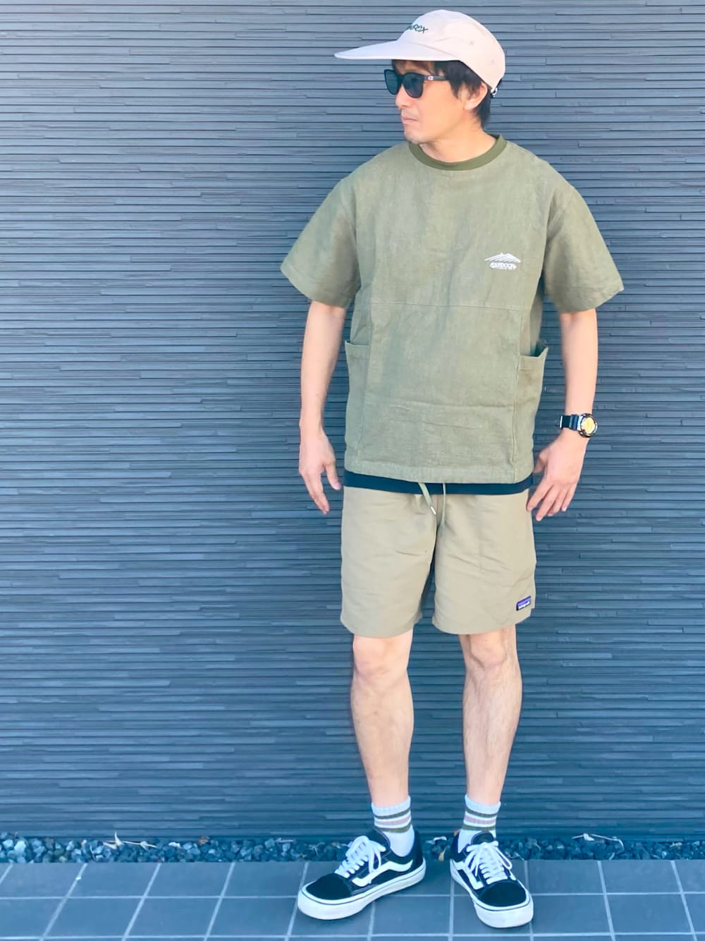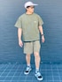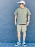 グリーン×ベージュでアウトドアスタイル🛶 毎日暑いので淡色でコーディネート😎 BBQに行きたくなるイメージ🍖