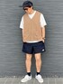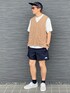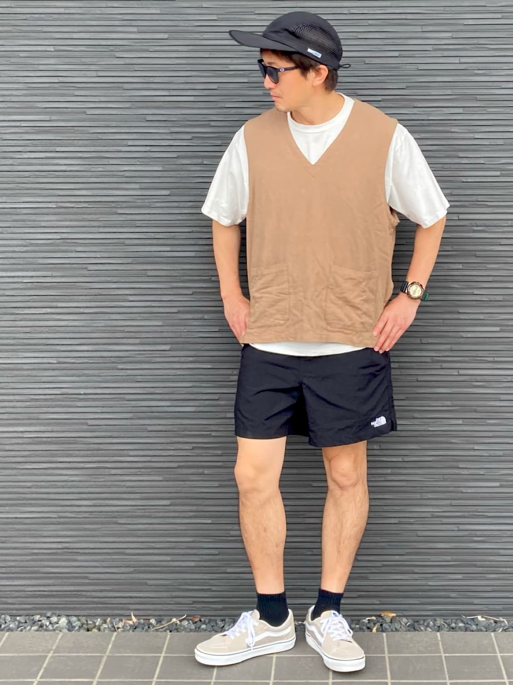 いつもの夏スタイルにベストでレイヤード😎 だけど…暑い🥵 9月になっても秋スタイルはまだまだかな…