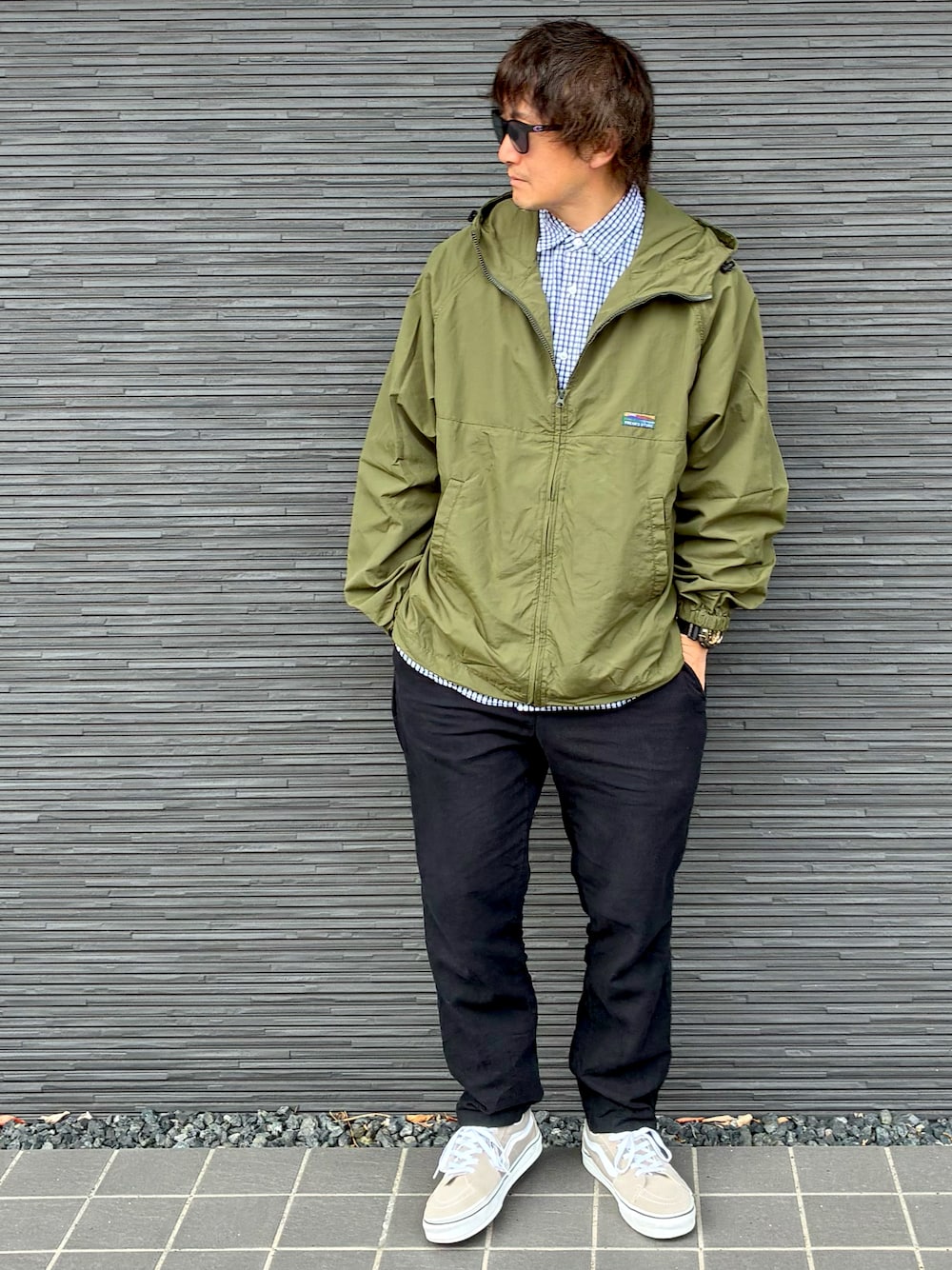 ビッグシルエットのシャツとナイロンジャケットでレイヤードスタイル😎