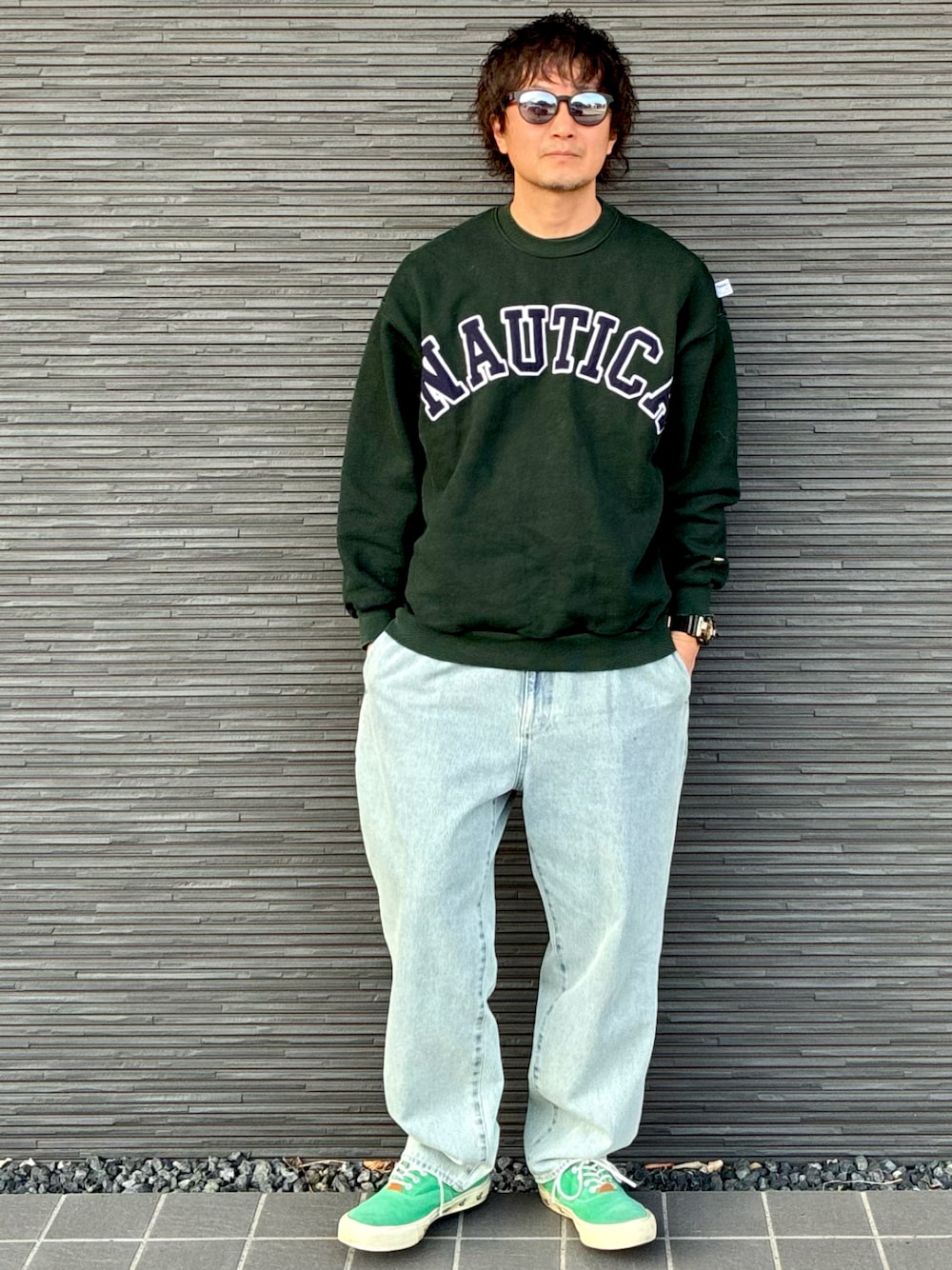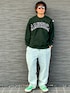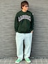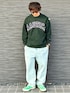 グリーンのスウェットとスニーカーで春色スタイル☘️🫛 薄色デニムで合わせてると、ブルーのデニムがグリーンに見える🤩