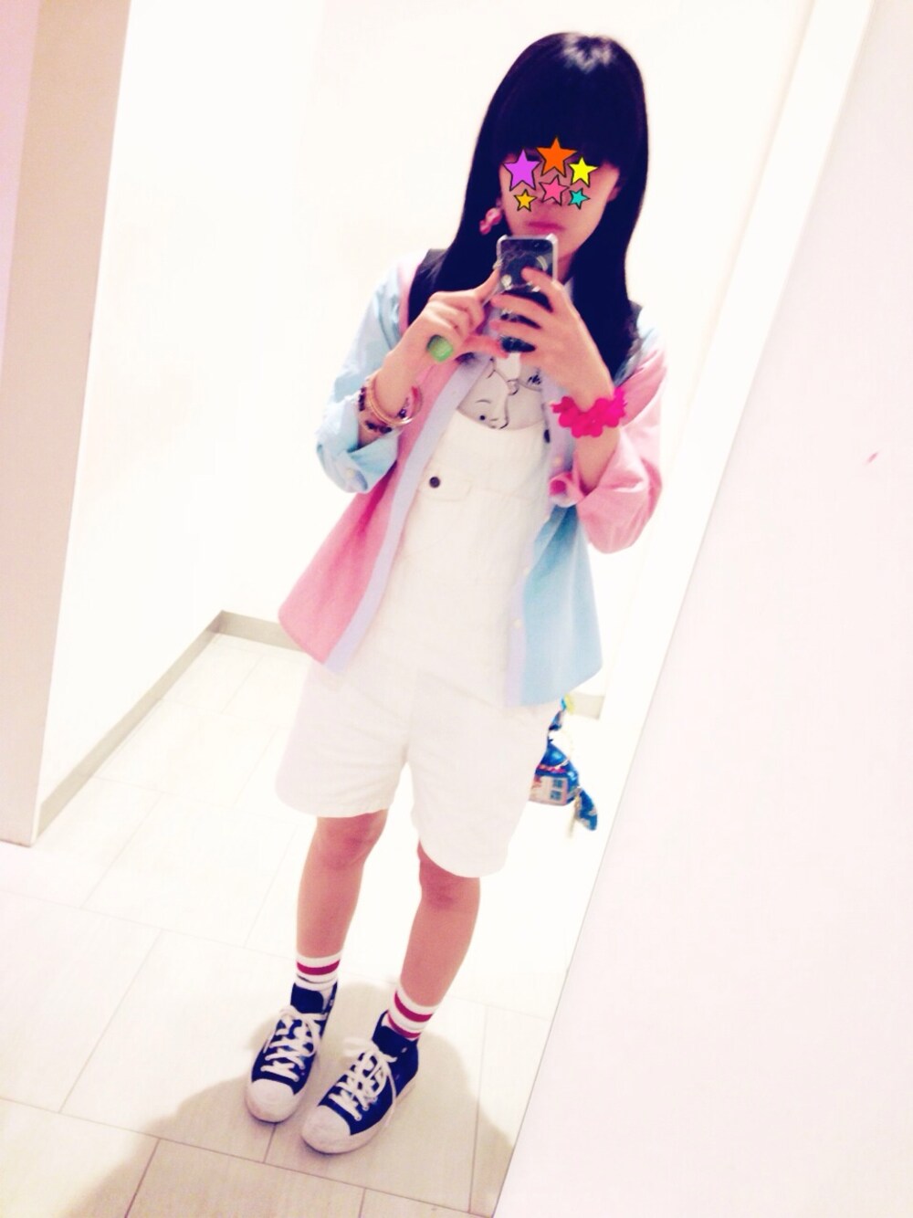 春っぽい色合いでKIDSコーデ サロペット・シャツ→GU(シャツはKIDS) Tシャツ→earth 靴→Forever21
