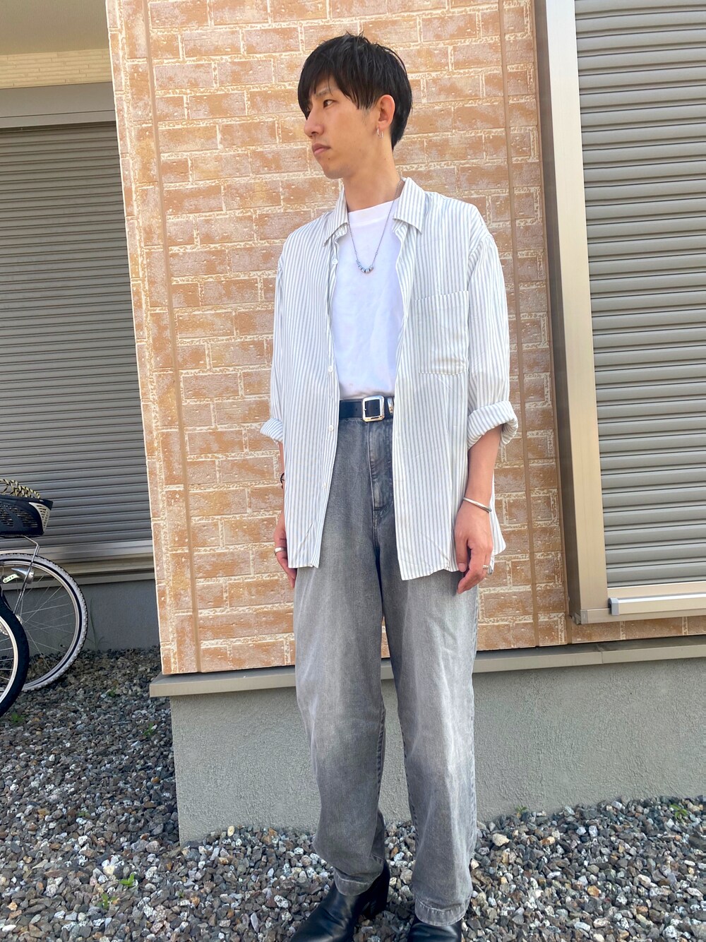 ストライプシャツにデニムの王道コーデ✨ 少し癖のあるアイテムで差別化したいです😌