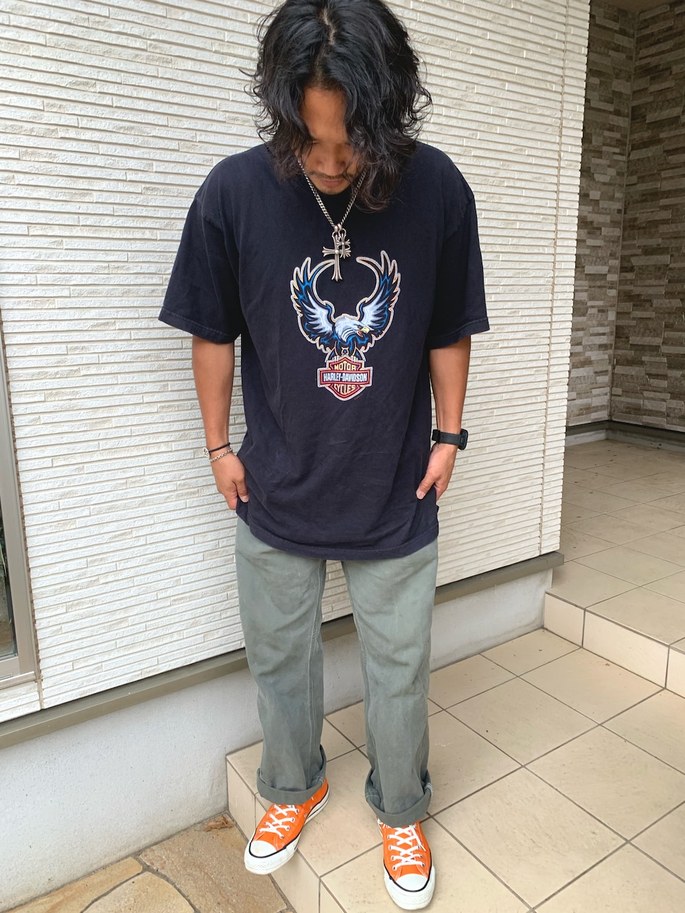RWCのスニーカー「CONVERSE コンバース キャンバス オールスター J ハイ / CANVAS ALL STAR J HI (ORANGE) 31301640」を使ったコーディネート