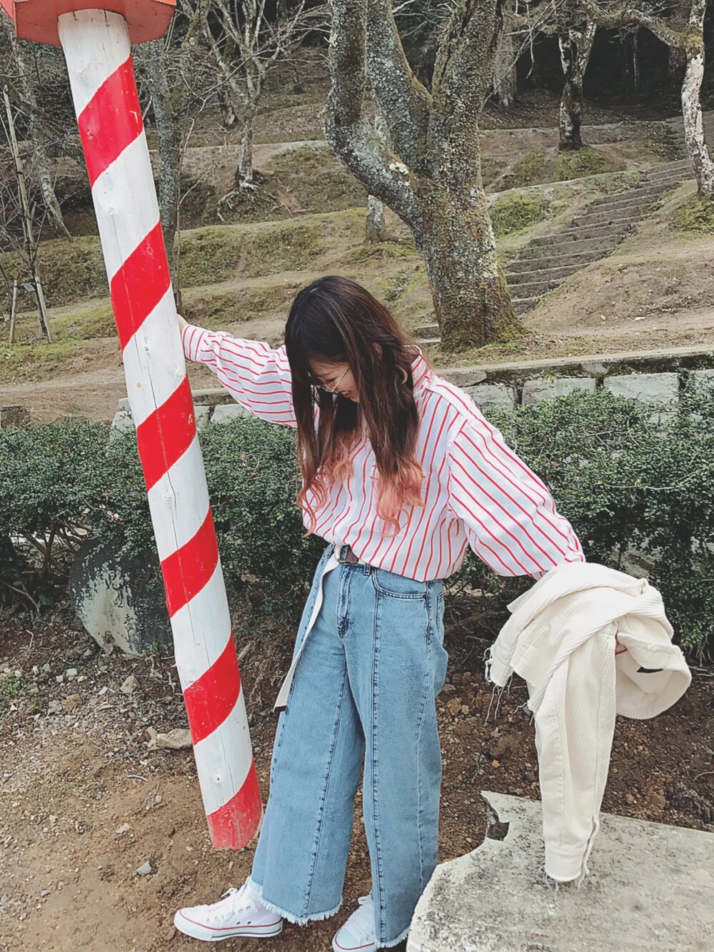 まだ桜は咲いてなかった😭😭 なんか派手な棒とおそろコーデ(笑)