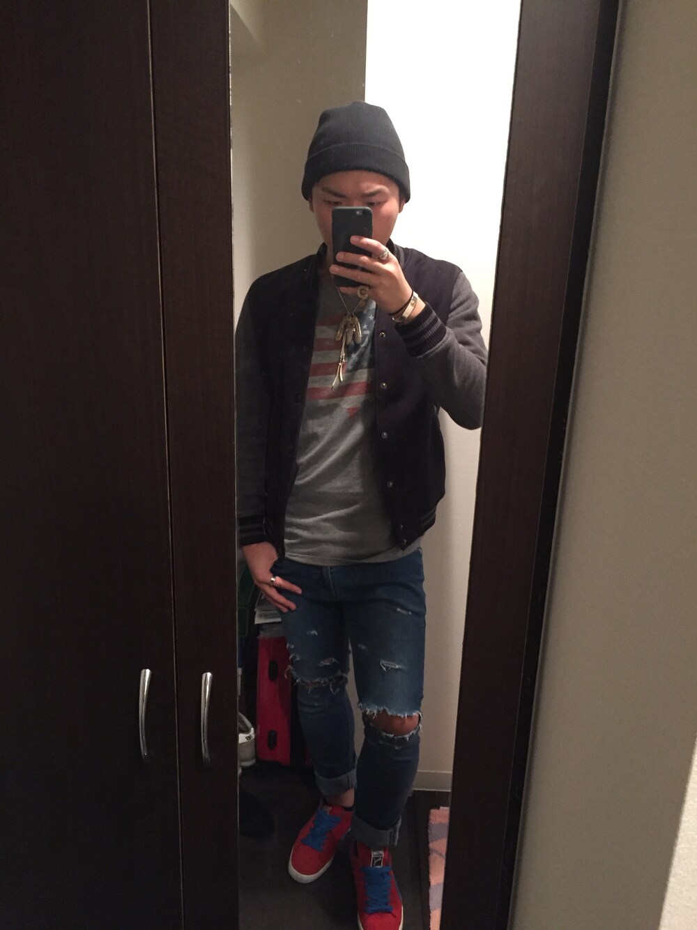 おはようございます! やっと仕事休みです(T ^ T) 今日は久々に実家へ帰ります。 今日のコーデは完全アメカジコーデ。 クロムハーツのスタジャンを買いたいですが登坂さんみたいなお金持ちではないので... GUで十分です。 だって3000円ですよ。 インナーはアメリカンイーグルの国旗系Tシャツ! 登坂さん風に着こなすなら、スタジャンは羽織ってもよし! あとはアクセをじゃら付け(笑) さらにクラッシュデニム! 靴はプーマの赤スニーカー。 紐と横ラインは青です。 かわいい( ̄▽ ̄) そろそろティンバーランド履きたい... いつも、いいねやフォロー、セーブしてくれる方ありがとうございます! 登坂さん風オリジナルコーデをこれからも載せていきます。