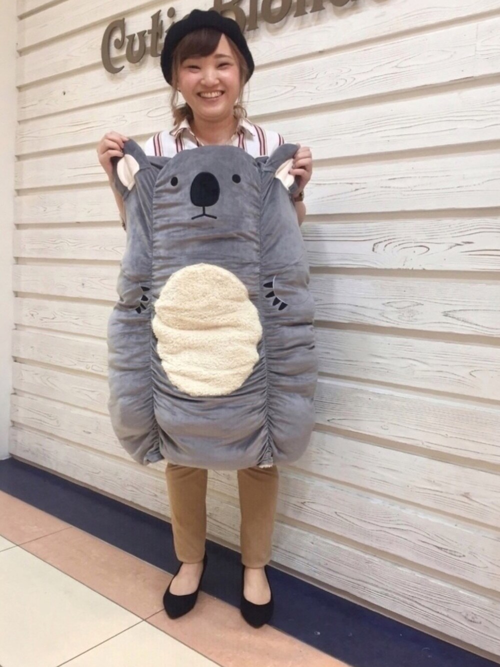 いいね&お気に入り、ご覧頂きありがとうございます😊 励みになります❤️ 本日はシューラルーWEARモデルのmissさん、chihiroさんとの三姉妹コーデです❤️ メインからツッコミどころ満載かと思いますがまずはご紹介を◡̈♥︎ こちら、シューろーるです🐨← 可愛いお顔のコアラさん、裏起毛になっていて暖かく🎵 かぶるだけでオッケー👌 お昼寝し放題ですよね💓 お客様ともそんなお話しになるくらい暖かそうなのです💓 ふわふわしており触り心地も抜群です👍 商品情報出ておらず申し訳ございません。よければ、お近くのシューラルー、キューティーブロンドまでお越しくださいませ! 三姉妹でコアラとナマケモノになりました❤️ 次女のmissさんは、コアラのシューろーるにステキなポージングに笑顔が可愛い💕 三女のchihiroさんは、ナマケモノのシューろーるにヘアスタイルに笑顔がキュン死にものです♡← 今回も素敵なお2人とのコラボ💕 毎度ながら有難いです😆 次回もよろしくお願い致します🙇♀️ 台風…大丈夫でしょうか? なにやら、伊勢湾台風?と同じくらいの大変な台風とお聞きしました! 伊勢湾台風といえば子供が入れ違うドラマ…らしいですが、私にはよくわからずです🙇♀️ 25年前の震災後の台風と同じ威力くらいの強いやつらしく…雨で壁が破れるくらいとニュースで実験していてびくびくしています。 私の店舗は館様が臨時休業になった為お休みなので、おうちでしっかり待機しようと思っています。 お仕事などで外に出られる方、気をつけてください。 関東の方も夕方大雨の予報らしいので、帰宅時気をつけてくださいね。 なにごともなく台風が過ぎ去り、被害がでませんように…💦 最後までご覧頂きありがとうございます😊